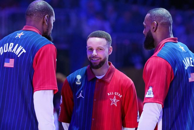 约基奇仅排第2也就罢了,詹杜库三大巨星竟然全部无缘前10,离了大谱!HoopHype百大球星完整榜单显示:库里仅排在第11位,老詹仅排在第19位,杜兰特直接被排到了22位!取代詹杜库进入HoopHype榜单前10的球星都有谁呢?米切尔、康宁汉姆和杰伦威!杰伦威上赛季以二当家的身份辅助亚历山大带领俄城冲冠,个人生涯首次入选全明星、最佳三阵和最佳防守二阵;米切尔上赛季带领骑士取得了东部最佳战绩,个人入选全明星首发和最佳一阵;康宁汉姆上赛季也带领活塞扮演大黑马的角色摸到季后赛地板,个人生涯首次入选全明星和最佳三阵。