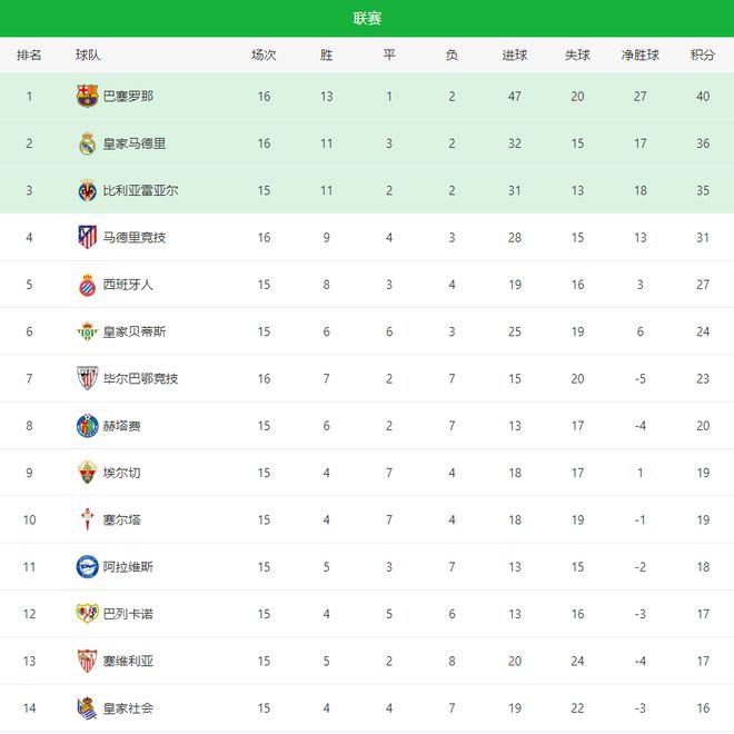 随着皇马0-2 + 西班牙人1-0!西甲最新积分榜:马竞掉队 争四乱了