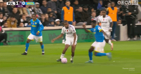 第9分钟,希门尼斯直塞,塞塞尼翁插上破门,富勒姆1-0狼队